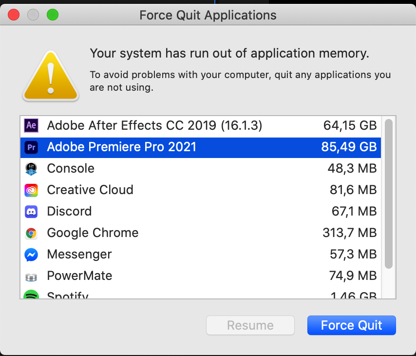 I can watch the memory spike in the task manager and when I minimize Premiere the memory usage drops significantly. By rollinlower january 16 2017 in troubleshooting. Out of nowhereb around 10 minutes in I start getting the Pop-up Your system has run out of application memory.